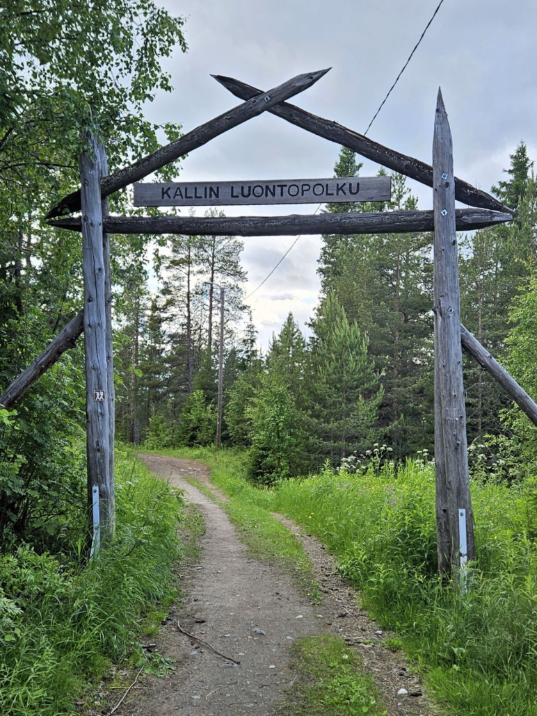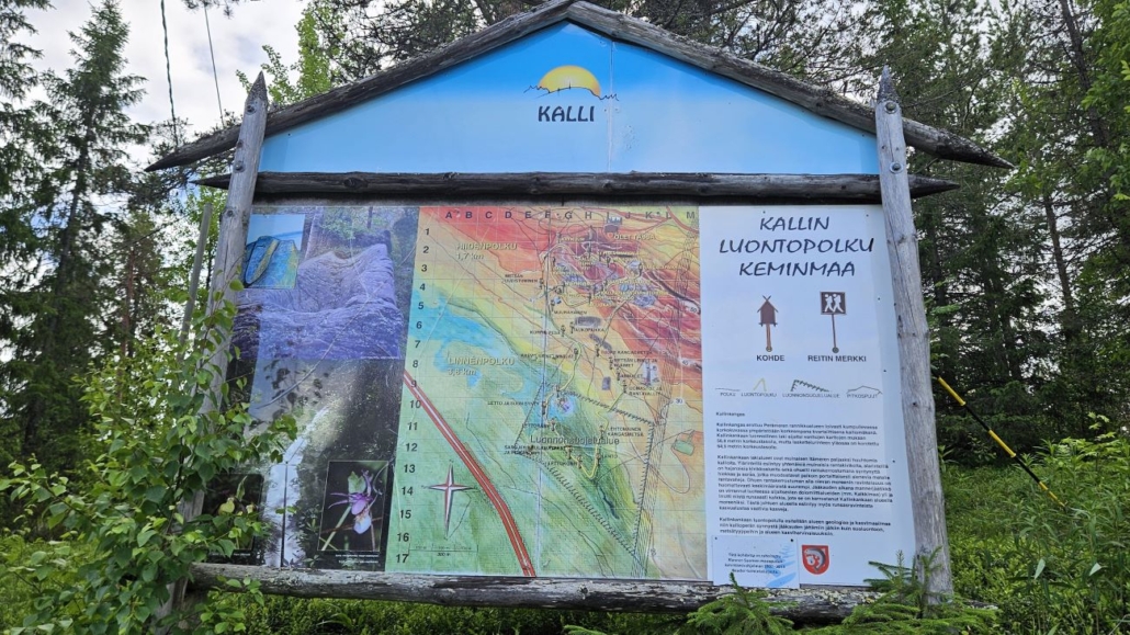 Saavuin kesäisenä mutta viileähkönä perjantai-iltapäivänä Kemiin. Käväisin ensin kävelemässä Tankokarin polun, mutta tuntui siltä, että voisin käväistä iltaretkellä vielä toisella polulla lähistöllä. Valitsin reitiksi Keminmaassa sijaitsevan Kallin tai Kallinkankaan luontopolun (netistä löytyy molempia nimivaihtoehtoja). Haluan heti ensimmäisenä mainita - ja mainostaa - Pentti Korpelan Lounais-Lapin retkioppaan. Kirja oli minulla mukana ja siitä oli suuresti hyötyä tällä retkellä. Kirjan painos on valitettavasti loppuunmyyty, mutta sen voi lainata kirjastosta (kuten minäkin olin tehnyt).