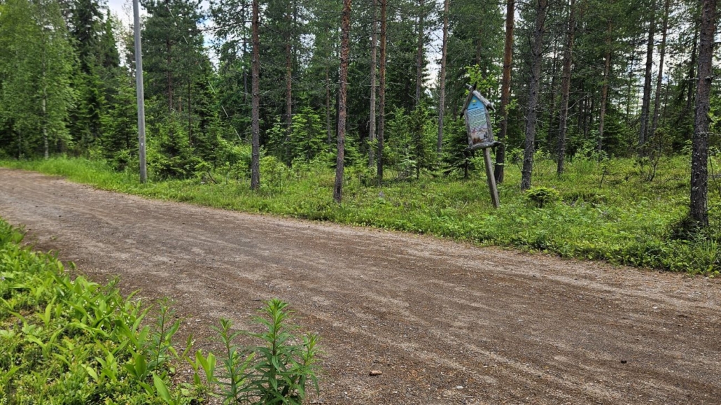 Nyt palasin lenkkipolulle, jossa olin kerennyt jo muutaman askeleen ottaa. Seuraavan kohdekyltin aihe on metsän uudistuminen. Takana oleva kangasmetsä on hakattu vuonna 1980, joskin vuoden 1982 Mauri-myrsky kaatoi vielä lisää puita. Metsä on sen jälkeen uudistunut luontaisesti.