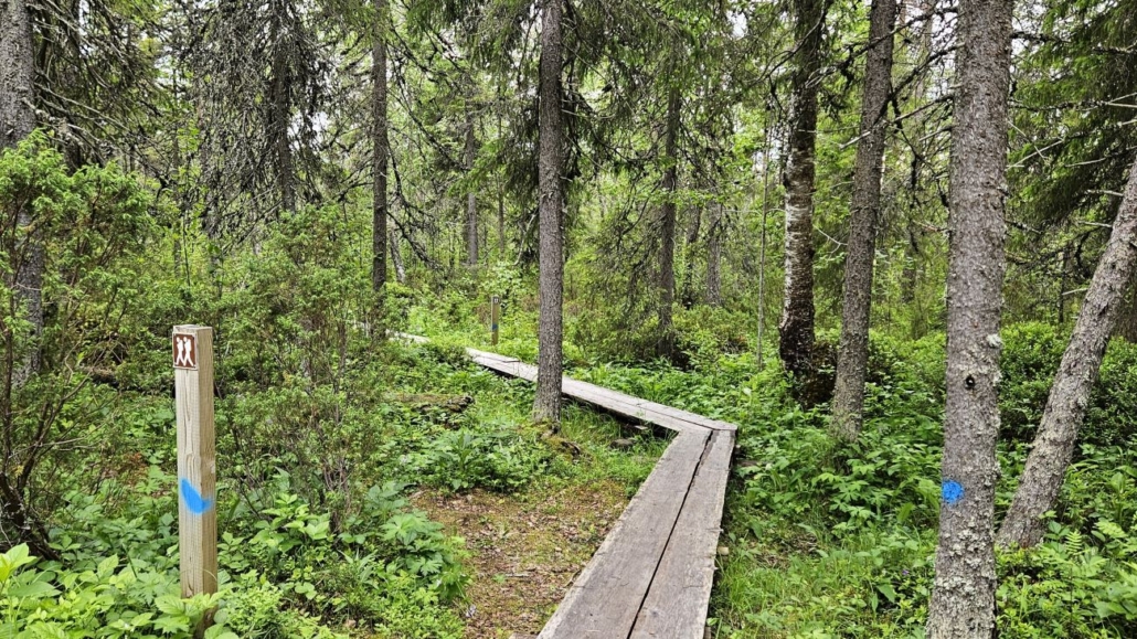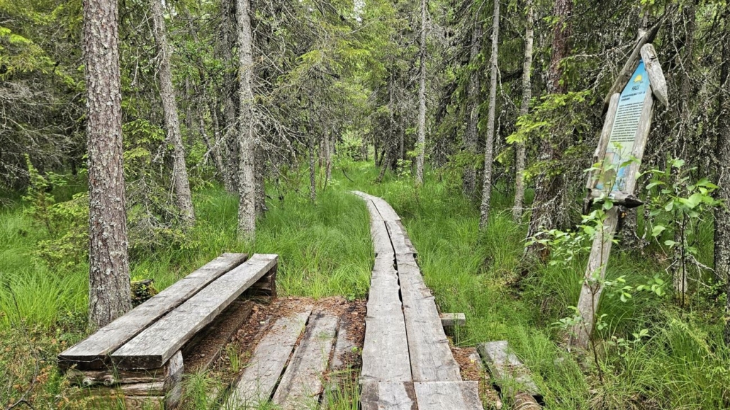 Reitti laskeutuu lettosuolle. Perämeren rannikon rehevimmät suot ovat muodostuneet maankohoamisesta tulleille uusille maille. Ne ovat nuoria ja turvekerros on täällä ohut.