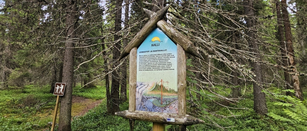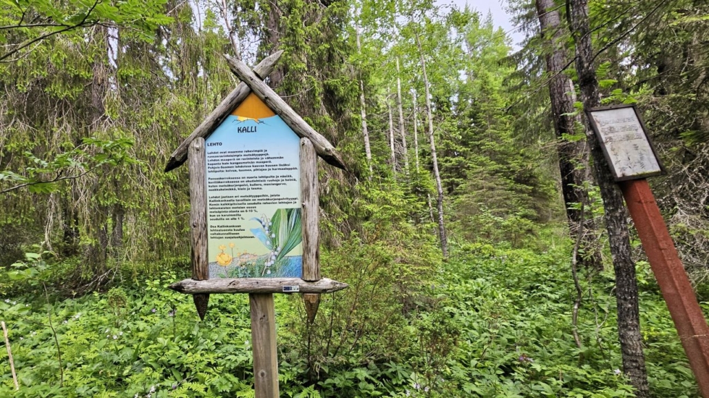 Enpä löytänyt selkeää karttaa tai opastetta Kallin luontopolun mahdollisista osista. Ilmeisesti täällä on kaksi eri reittiä: Hiidenpolku ja Linnénpolku. Luulen kävelleeni vain Linnénpolkua pitkin. Se johdatti nyt kohti lounasta ja takaisin kohti lenkkipolkua.