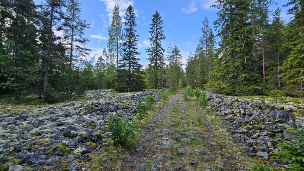 Tämäkin kohdetaulu on mielenkiintoinen. Vesi ja jäät ovat kasanneet tänne rantavalleja ja kivikasojen takana voi olla taas matalampi uoma. Rantavalleilta hiekka on saattanut huuhtoutua alemmas laaksoon, jonne on syntynyt sankka metsä, kun taas entiset rantakivikot ovat hyvinkin karuja.