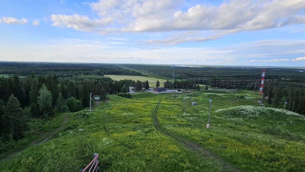 Maisemaa voi ihailla joka suuntaan. Tässä maisemaa kuvattu laskettelurinteen suuntaan eli koilliseen.