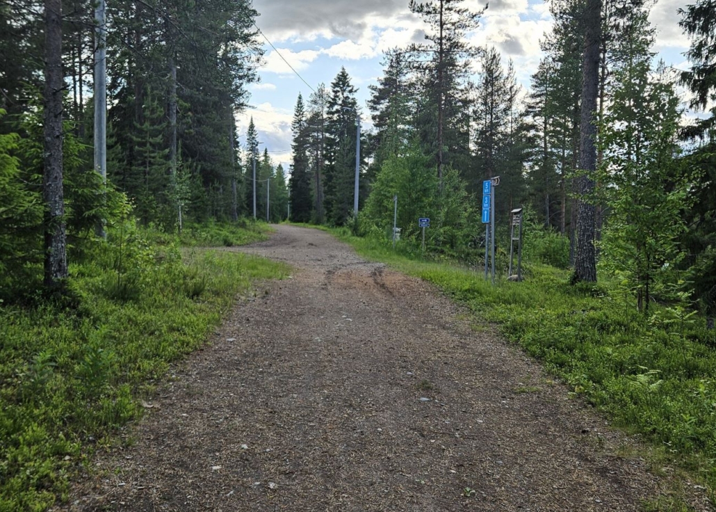 Alkumatkalla kuljetaan leveää pururatamaista ulkoiluväylää. Risteyksiä on paljon, samoin erilaisia opasteita ja kylttejä - esimerkiksi hiihtolatujen tai lenkkeilyreittien pituuksia.
