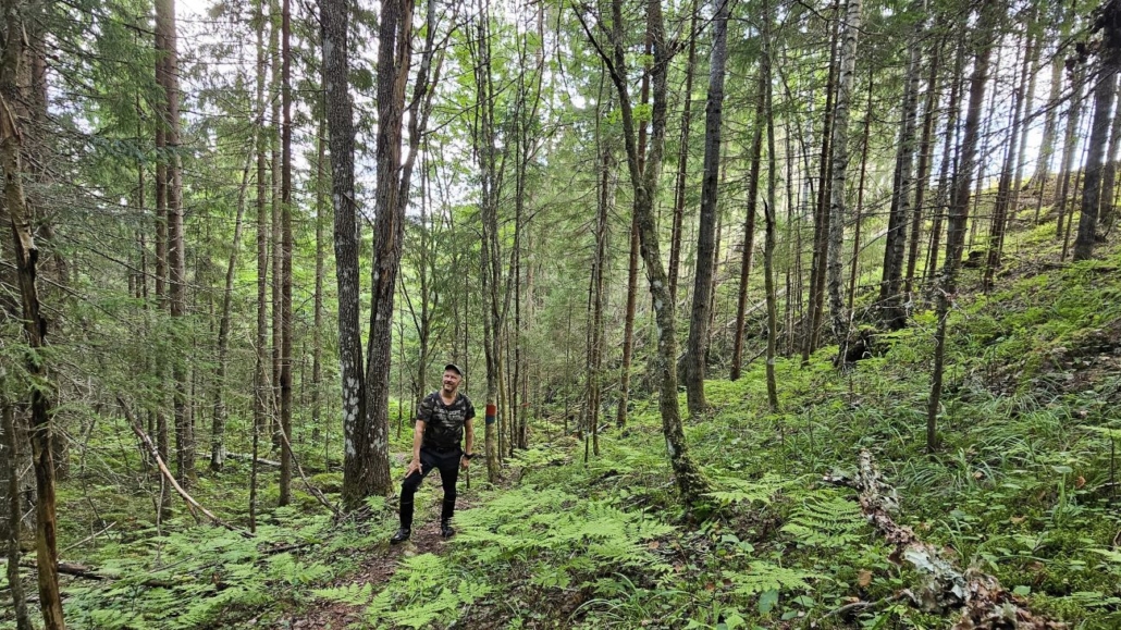 Jyrkähkö rinne ja siinä kasvava sekametsä tuntui eksoottiselta. Voiko tällaista maastoa olla Etelä-Savossa? Samanlaista rinnettä olin kävellyt keväällä Vaara-Kainuun sydämessä, jylhällä Kometon kierroksella Puolangalla.