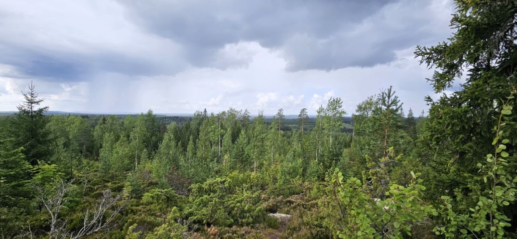 Täällä Sinivuoren huipulla ollaan siis 213 metrin korkeudessa. Maisemat ovat jylhiä - oikeastaan suorastaan harvinaiset näillä leveysasteilla. Sekä pääkuvassa että alla olevassa kuvassa hienoa maisemaa, joka aukeaa länteen päin.