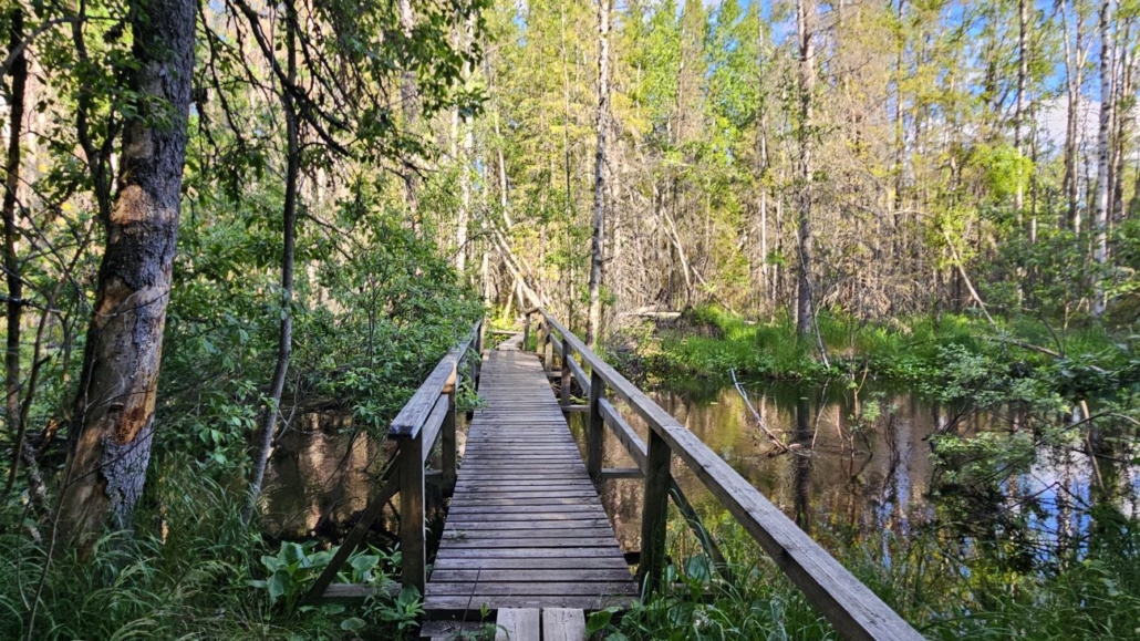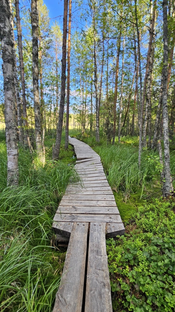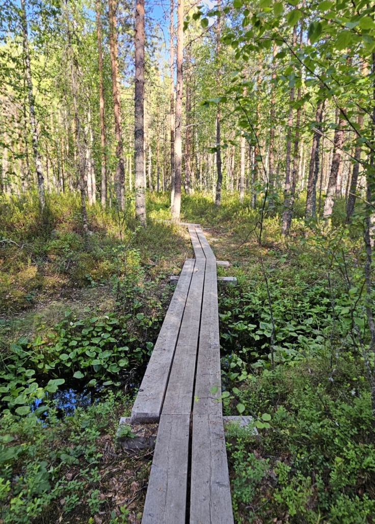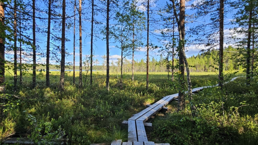 Puolen kilometrin janapolun jälkeen huomasin, että toiveeni toteutui. Ympyräreitti alkaa pitkososuudella, lähditpä kumpaan suuntaan tahansa. Käännyin siis kohti Kalimeenlampea eli itään ja kulkemaan varsinaista kierrosta myötäpäivään.