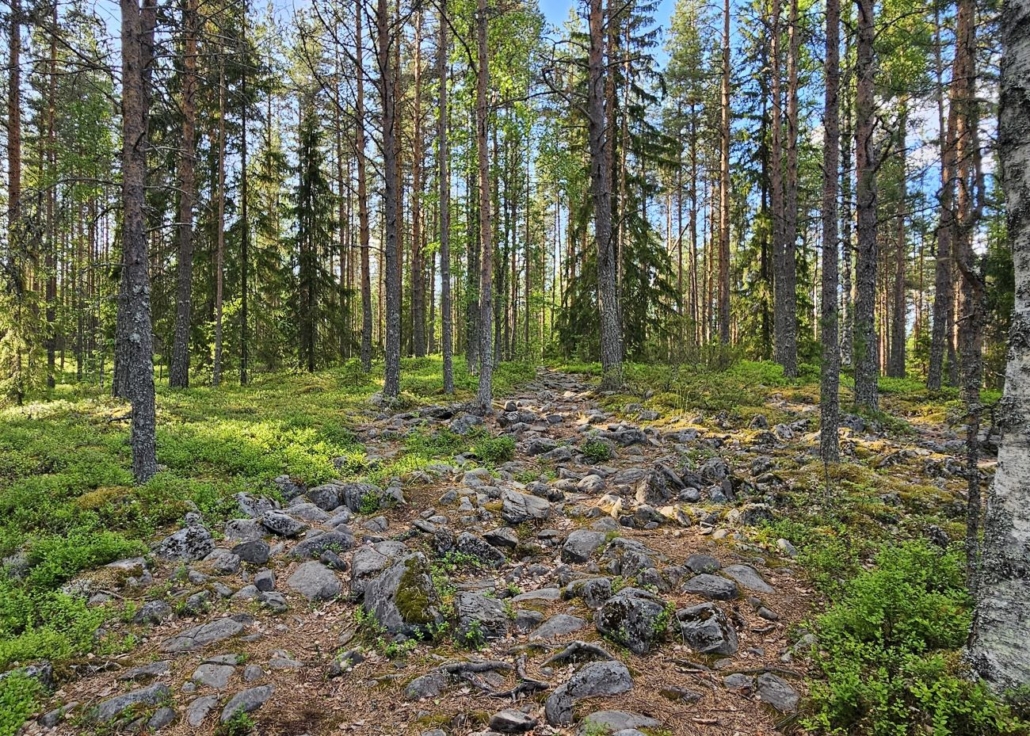Kohta alitetaan voimalinja toiseen kertaan. Sen jälkeen noustaan Isolle Polvikankaalle. Tässä alkoi reitin ehkä hankalin osuus, joka oli melko kivikkoinen. Ihan näin kivikkoista reitti ei seuraavan kilometrin ajan ollut, mutta kävelyvauhti varmasti hidastui aiemmasta. Täällä käydään myös reitin korkeimmalla kohdalla.