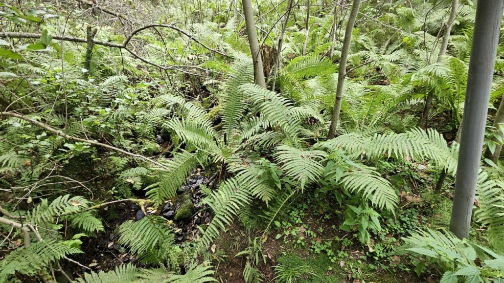 Vehreä purolaakso oli täynnä kotkansiipiä. Melkoinen viidakko!