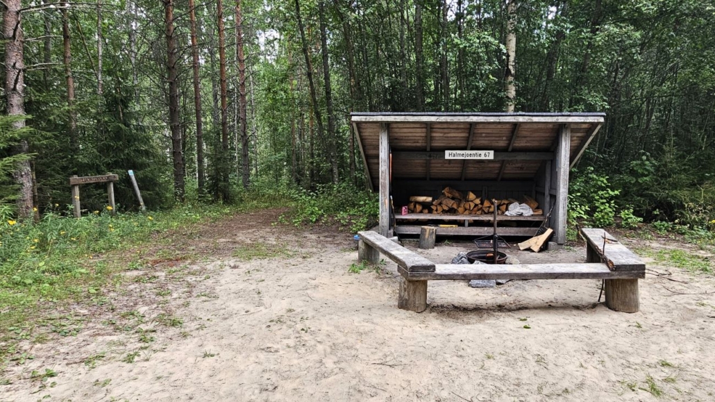 Ympyräreitti päättyy hiekkakuopalle ja laavulle. Palailimme janareittiä lähtöpaikalle. Matkamittari osoitti noin kahta kilometriä, aikaa käytimme 50 minuuttia. Tapasimme yhden muun luontopolun kulkijan.