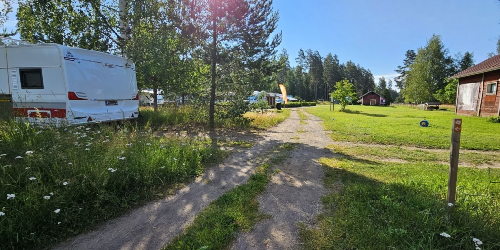 Pian tullaan Kartano Golfin pihaan. Onpa tämäkin nyt sitten nähty. Polku kääntyy vasemmalle, mutta reitin tukkii asuntovaunu. Piti tehdä pieni kierros kauempaa ja jatkaa polulle parinkymmenen metrin päässä.