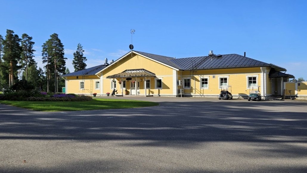 Hetken aikaa piti vielä katsella karttoja ja miettiä, miten reitti tässä Kartano Golfin pihalla kulkee. Näin reittimerkinnän ravintolarakennuksen lähellä, mutta vain kartan perusteella osasin päätellä, että seuraavaksi kurvataan talon takanurkalta oikealle. Tosin, eipä tässä muitakaan polkuja ole tarjolla. Toinen vaihtoehto olisi varmasti kävellä Ravintola Kesäkartanon ovesta sisään.