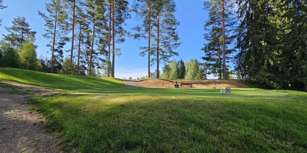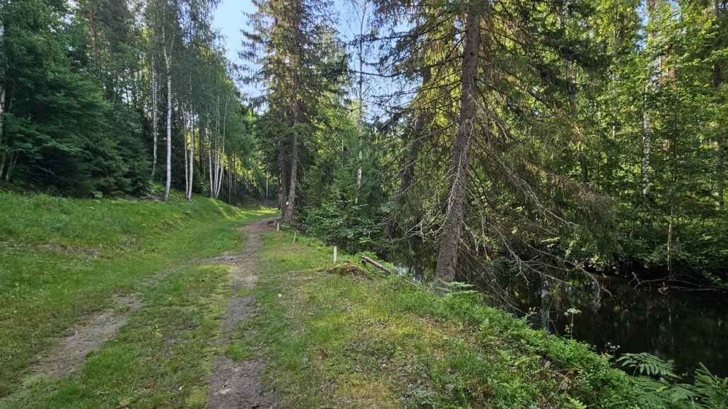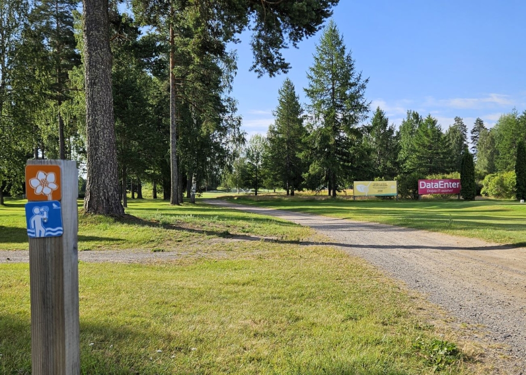 Väylistä puheen ollen, puolentoista kilometrin kohdalla polku siirtyy Kartano Golfin golfväylien laitaan.