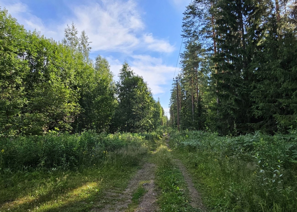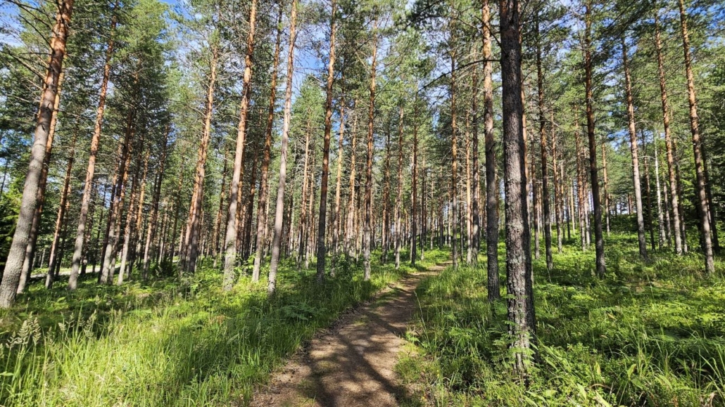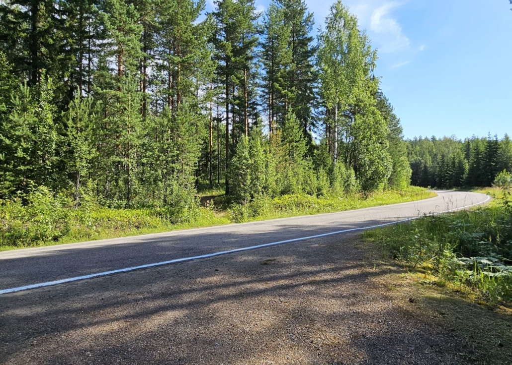 T-risteys. Saimaan reitti kääntyy oikealle, Kangasvuokon kuiskaus vasemmalle. Hetken aikaa kuljetaan hiekkatietä, sitten ylitetään leveämpi Kerisalontie. Sen toisella puolella tie kapenee metsätieksi ja kohta jo metsäpoluksi.