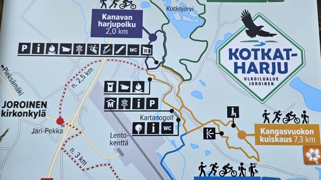 Keväällä 2025 kuulin tai luin jostakin, että Joroisiin oli avattu uusi kävelyreitti, Kangasvuokon kuiskaus. Mietin, oliko kyseessä mahdollisesti aiemmin kävelemäni Kotkanpolku. Reittien nimiähän saatetaan vaihtaa esimerkiksi jos polun linjausta joudutaan muuttamaan vaikkapa maanomistajien tai metsähakkuiden takia. Myöhemmin selvisi, että kyseessä oli kuitenkin kokonaan uusi luontoreitti - lähtöpaikka olisi sama kuin aiemmin kulkemallani Kotkanpolulla. Ajattelin, että tämä voisi olla kesäkohteitani, sillä kesämökiltäni on Joroisiin vain noin tunnin ajomatka.