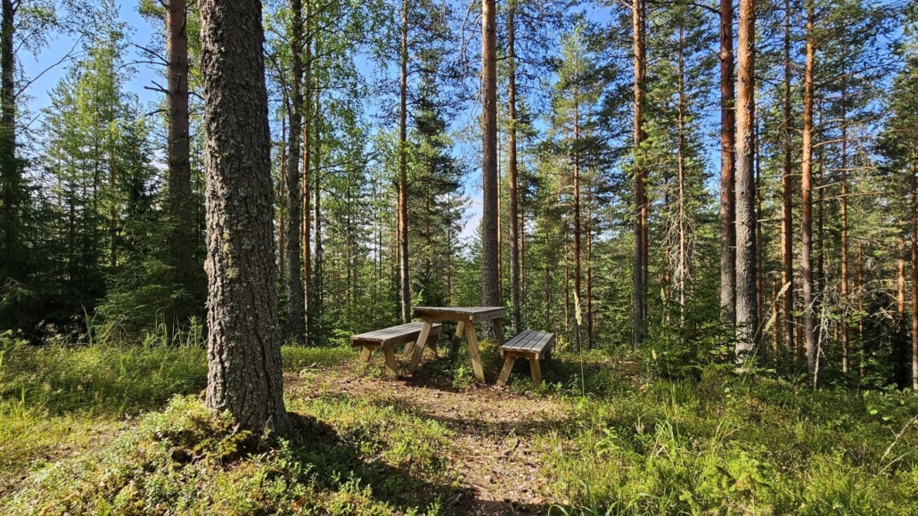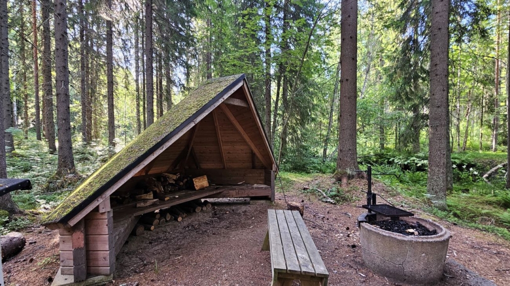 Reitti laskeutuu Kanavajoen rantaan. Täällä on laavu ja tulipaikka.