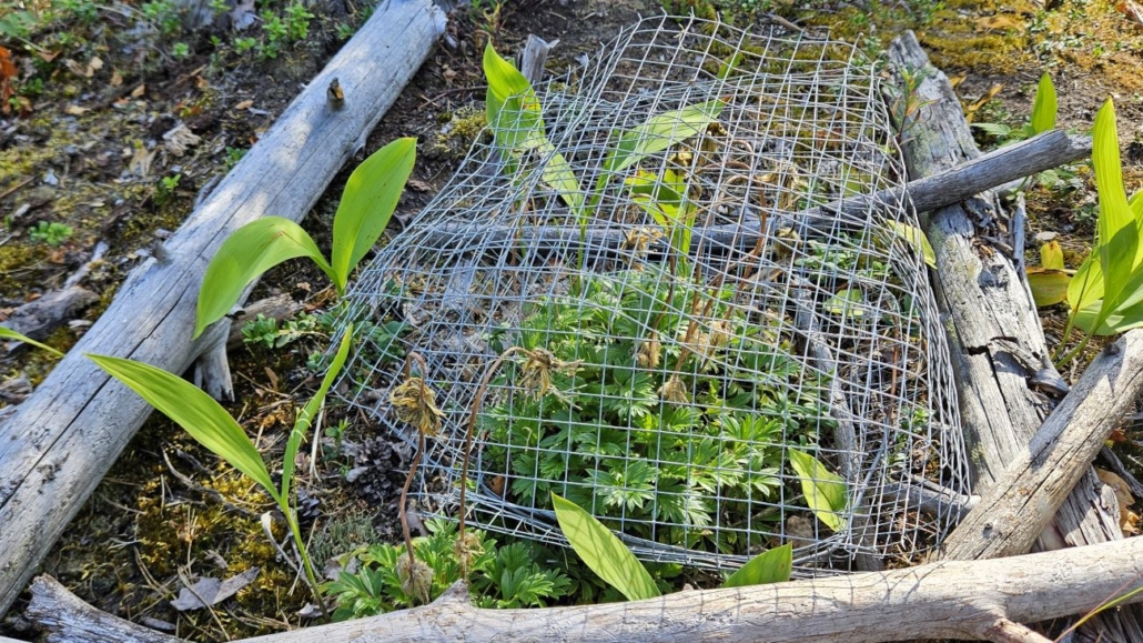 Kyllä. Onneksi kangasvuokot oli suojattu verkolla, muuten niitä varmasti tallottaisiin. Ne olivat ehkä 3-4 metrin päässä tämän väylän korista.