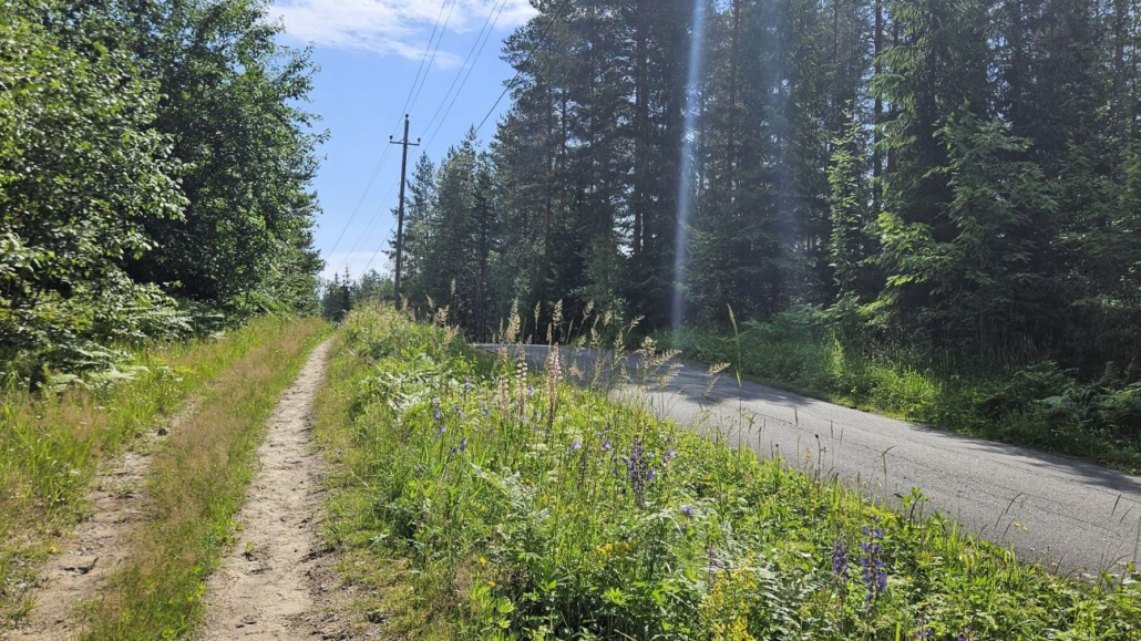 Saavuin pysäköintipaikalle melko aikaisin heinäkuisena lauantaina. Laajalla parkkipaikalla oli mahdollisesti yksi tai kaksi autoa, jätin omani alueen länsireunaan, josta reitti alkaa Usminjärventietä pitkin. Kävelin hetken tien laidassa ennen kuin huomasin, että ojan toisella puolella olikin kävelypolku. Olisihan minun pitänyt tämäkin muistaa, sillä samaa reittiä olin lähtenyt pari vuotta aiemmin Vaskivuoren luontopolulle.