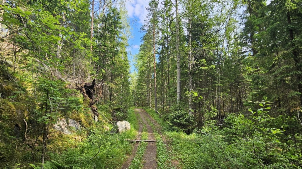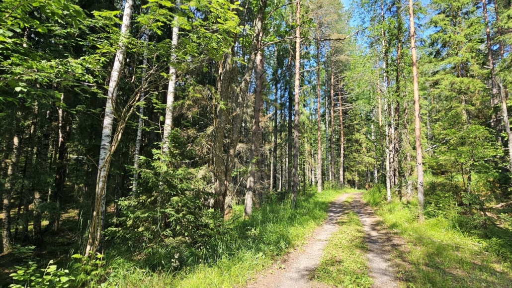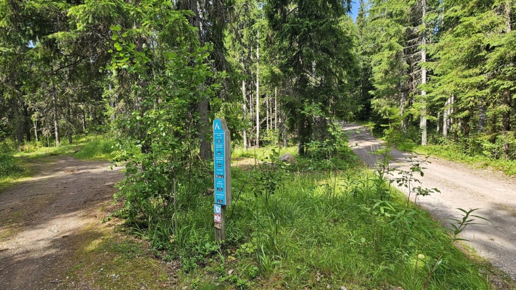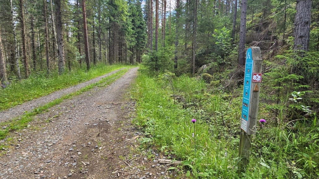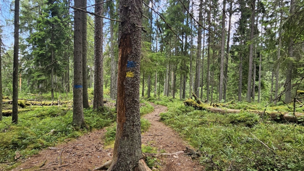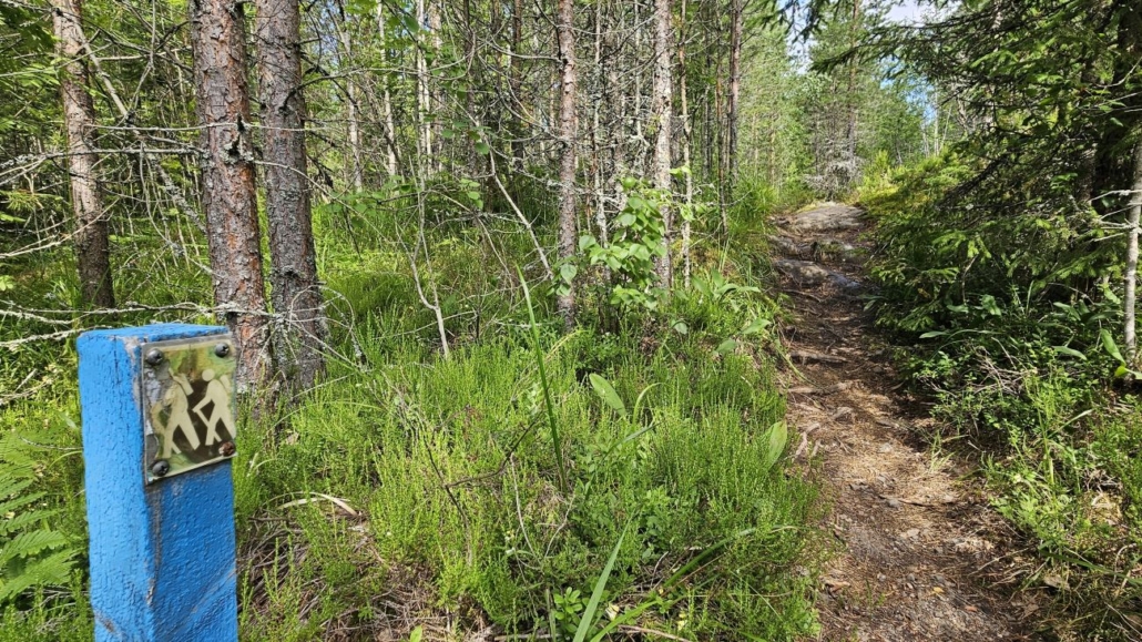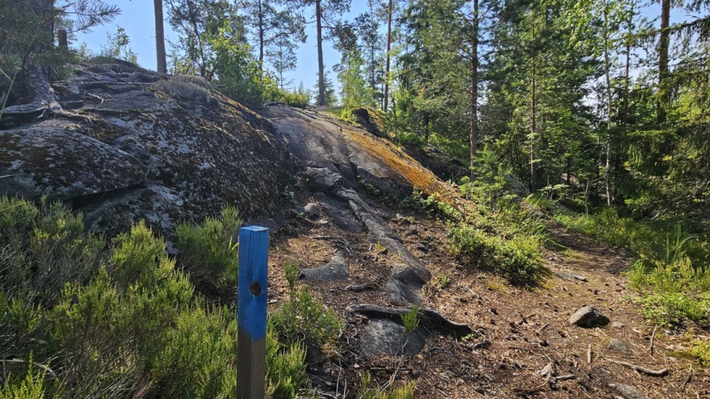 Tie päättyy noin kilometrin kävelyn jälkeen ja reitti jatkuu kapeampana polkuna. Siniset tolpat vaeltajamerkein johtavat aivan Hyvinkään invalidien kesäkodin mökkien takaa kohti metsäisempiä maisemia.