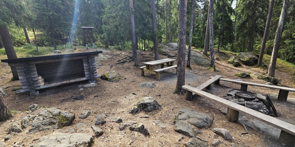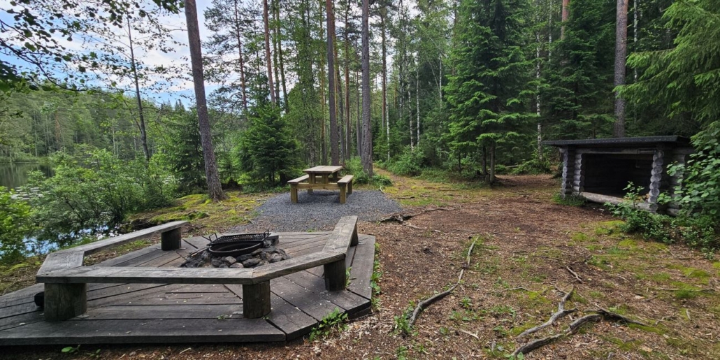 Parisataa metriä ja lampi kaksi: Iso-Kypärä. Tämä kiva taukopaikka tarjoaa niin laavun, tulipaikan kuin piknikpöydänkin.