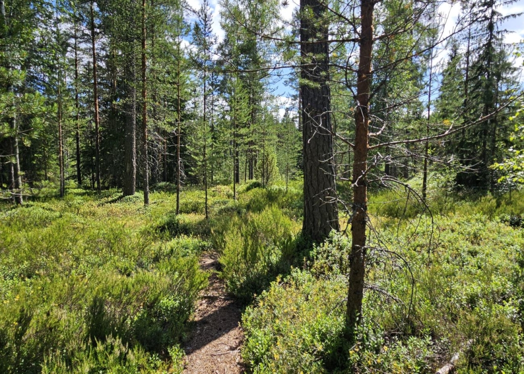 Näillä tienoin ensimmäinen kilometri täyttyy. Reitti kulkee kuivahkolla mäntykankaalla.