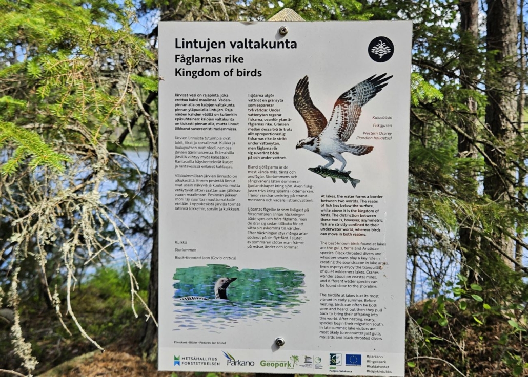 Paluureitti kohti metsämuseota kulkee aivan järven tuntumassa. Matkalla on vielä muutama luontotaulu - osa näitä "aikuisille suunnattuja", osa lasten toiminnallisia rasteja.