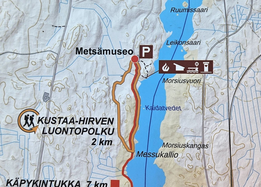 Metsämuseo ja Messukallio ovat ihan viehättävät nähtävyydet, ja Kaidatvedet tarjoaa oikein mukavia järvimaisemia. Mukava kokonaisuus ja hyvä välipala vaikkapa kolmostietä ajellessa!