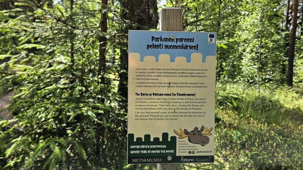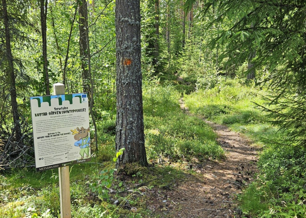 Reitin varrella on kahdeksan toiminnallista pistettä. Heti ensi metreillä kerrotaan, miten Parkanon parooni Gustaf Wrede af Elimä pelasti hirvet tarhaamalla niitä tänne salametsään. Siksi varmaan hänen kaimansa Kustaa-hirvi on nimennyt luontopolunkin.
