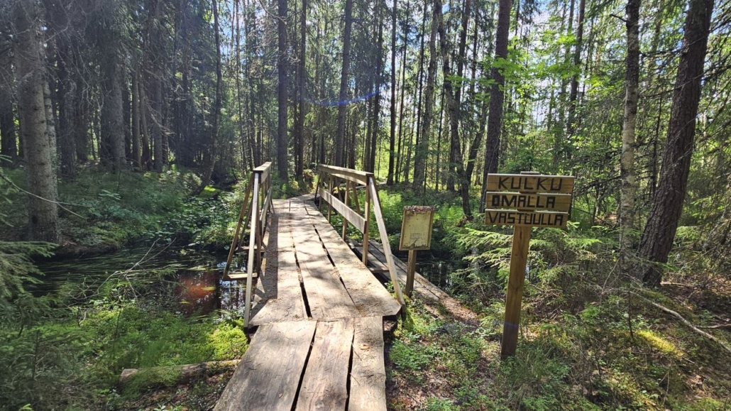 Reitti kulkee leveähkön ojan yli siltaa pitkin. Kaikki rakenteet täällä ovat hyvässä kunnossa.