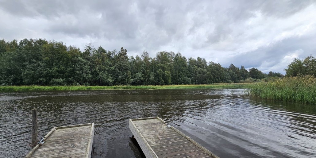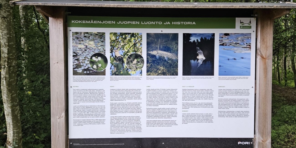 Samoin laituri, jossa voi käydä vilkaisemassa Kokemäenjokea. Tarkkaan ottaen tässä ei taideta olla vielä Lanajuovan rannalla, sillä joki haarautuu juuri lähtöpaikan kohdalla.