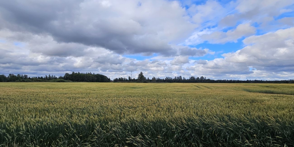 Reitti siirtyy hetkeksi Lanajuovantielle. Tässä voi ihailla komeaa viljapeltoa.