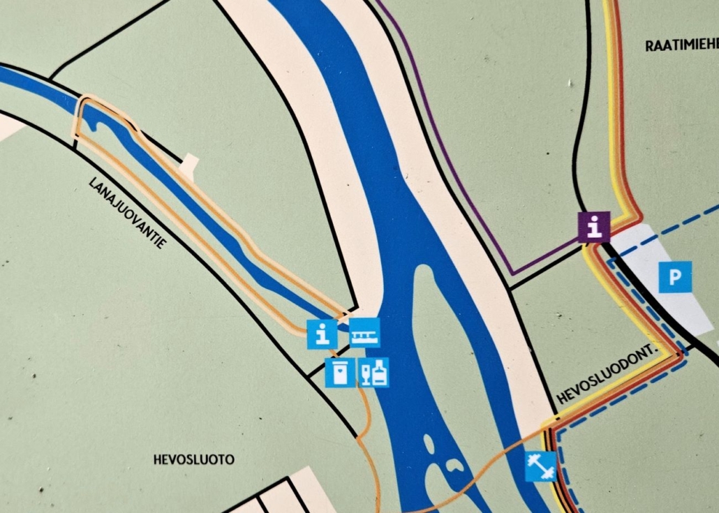 Lanajuovan reitti kulkee Hevosluodolla kohti luodetta ja palaa sitten toista luotoa, Kvistinluotoa, takaisin lähtöpisteeseen.