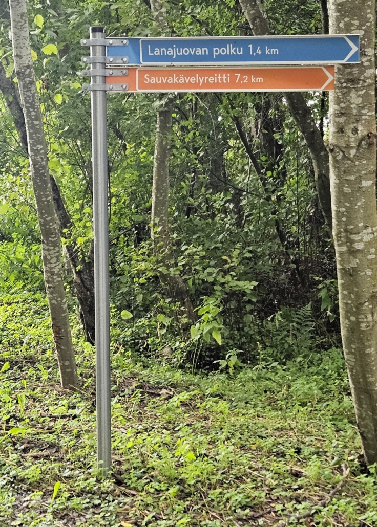 Täällä kuljetaan koko ajan Lanajuovan välittömässä tuntumassa. Kauimmillaan reitti lienee vain kymmenkunta metriä uoman äärestä.