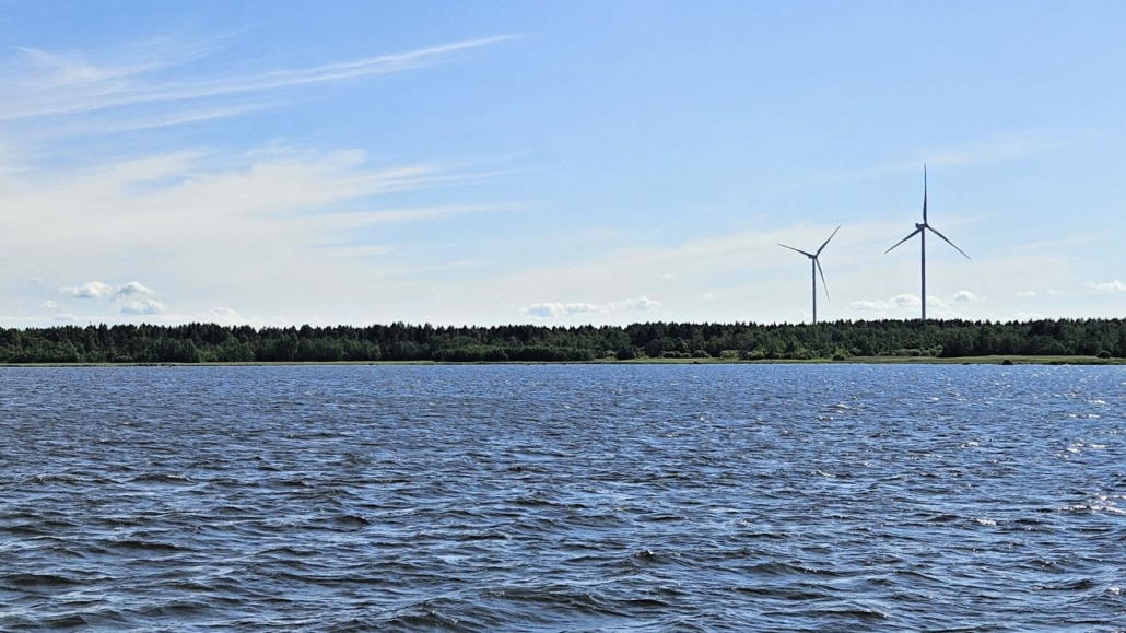 Paluumatkalla nappasin vielä kuvan, jossa näkyy samana aamuna kävelemäni Rummelö-Harrbådanin luontopolun varrella oleva lintutorni. No, näkyy ja näkyy - se on suurinpiirtein vasemman tuulivoimalan kohdalla. Joka tapauksessa nämä kaksi kivaa retkipaikkaa (Tankar ja Rummelö) ovat helposti yhdistettävissä, lähtöpaikkojen väliä on pari kilometriä.
